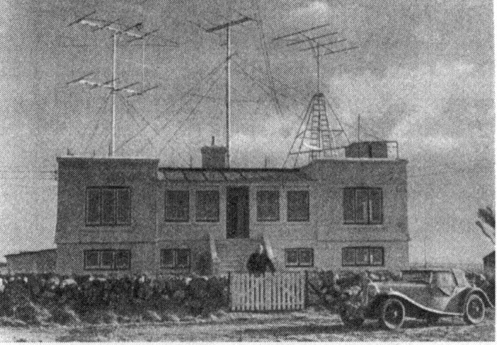 In his regular ‘Five Metres' column in the magazine Short Wave News for July 1947, the writer ‘AJ Devon' (a pen-name for the editor Austin Forsyth, G6FO) described a visit to Bolt Tail saying that : “The site was a magnificent one with clear views in all directions, and 19 acres of headland available for the erection of aerials” . Not only was this site a VHF operator's paradise, the station itself was very spacious - a complete house in fact, fitted out with everything necessary for serious VHF propagation experimentation. The photograph below gives some idea of the size of the station and shows various antenna arrays located on the flat roof.