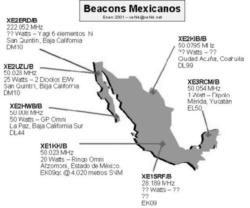 At the time of writing there are few Mexican stations active on six metres and it is not easy to find information about their activity as contacts between Mexican stations are at the best sporadic.