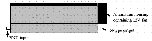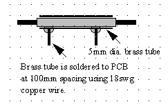 The input to the amplifier is via a chassis mounting BNC socket at one end of the housing, while the output is taken via a N-type socket mounted at the other end. Power, 4 50V @ 20A, + 12V for the fan, and switched +50V for the two bias generators are fed in by multi-pole socket. Because of the high RF field inside of the case, all power supply leads that are greater than 10cm long are screened. In the case of the main +50v supply wires, these are screened using 5mm diameter solid brass tube by feeding the multi-strand cable down the centre as shown in Figure 10. A benefit of using brass tube is that the supply wires are held rigidly and neatly in place.
