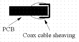 The underside of the PCB is left unetched but must be electrically connected to the upper side ground plane over the full extent of the board. This is achieved by drilling ]mm holes about 10mm apart around all the pads carrying RF power. Short pieces of wire are through these passed through the holes and soldered to both sides of the board (Figure 7). It is especially important to put many of these links around and under the emitters of the BLW96s. The second unusual design technique is shown in Figure 7. The upper and lower ground planes are also shorted together all around the edge of the board. The best way of achieving this is to strip the braid from short lengths of UR-58 coaxial cable and fold this over the edge of the board as shown in Figure 8. Because of the high RF currents circulating in the amplifiers, especially in the output combiner, it is imperative that the correct (or equivalent) fixed and tuning capacitors are used. The ones quoted are low-loss types and do not heat up at all at the power levels encountered in this design. The trimmers are 57pf, Phillips foil trimmers type: 200-80908003 and the 47pf chip capacitors are 300V ATC transmitting types. These look like a small 3mm on-a-side cube.