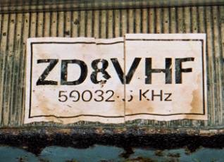 | The label originally put on the beacon by G3JVL in 1989 but found lying on the floor. | The antenna used by MIke, ZD8MB in cycle 22 |
