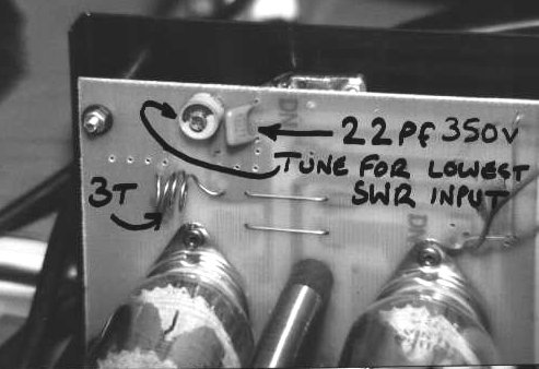 1. Remove the 2 x 82pF input tuning caps and replace the one on the