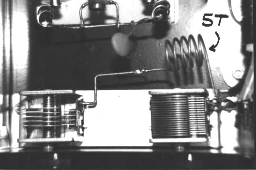3. Remove the plate loading coil and make new one (or cut down the original) with the same diameter but with five turns (the original was 13 turns).