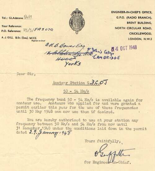 Oct 1948 50Mc/s General Permit