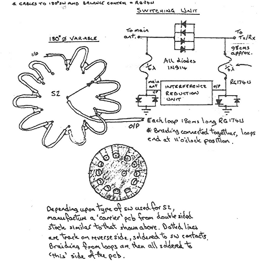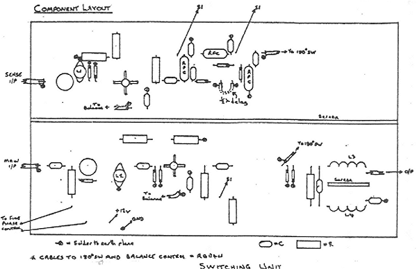 Component values are not critical however the coil dimensions should be adhered to. Note the small screen between L3 and L4. e phase switch is a twelve way rotary, soldered to a PCB carrier holding eleven loops of RG-174 coax.