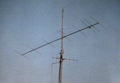 Initially I ran my stack of two eight-ele yagis, but this greatly attenuated the higher lobes of the yagis' H-plane beam width and I didn't hear too much until the moon reached 10 degrees elevation. An EME sked QSO must be made within a one-hour time slot according to the IARU rules, and so I needed an aerial that would give me the best chance from a one-hour slot. I decided to make a radical change to my station in order to run the last two skeds on a single yagi, with which I could listen on the 2nd and 3rd lobes much better. So on the Friday night I designed a new eight-ele yagi on a 40-foot boom, with just a shade under 12dBd forward gain; this was to be run at 70 feet above ground. On Saturday I took down the stack and went about building the single eight-ele. I had it on the mast and working by 2000z that night, one hour before the sked with W7ALW.